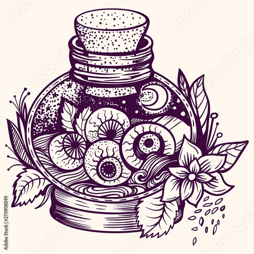 Magic Potion Bottle Jar With Eyes Inside Tattoo Art Style Illustration Bohemian And Gypsy Motifs Buy This Stock Vector And Explore Similar Vectors At Adobe Stock Adobe Stock