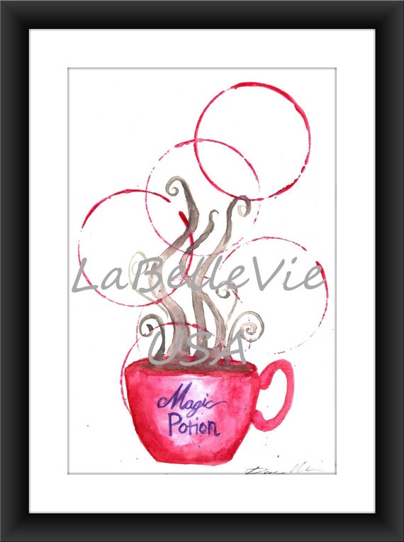 Watercolor Magic Potion Coffee Time Downloadable Print Art Etsy
