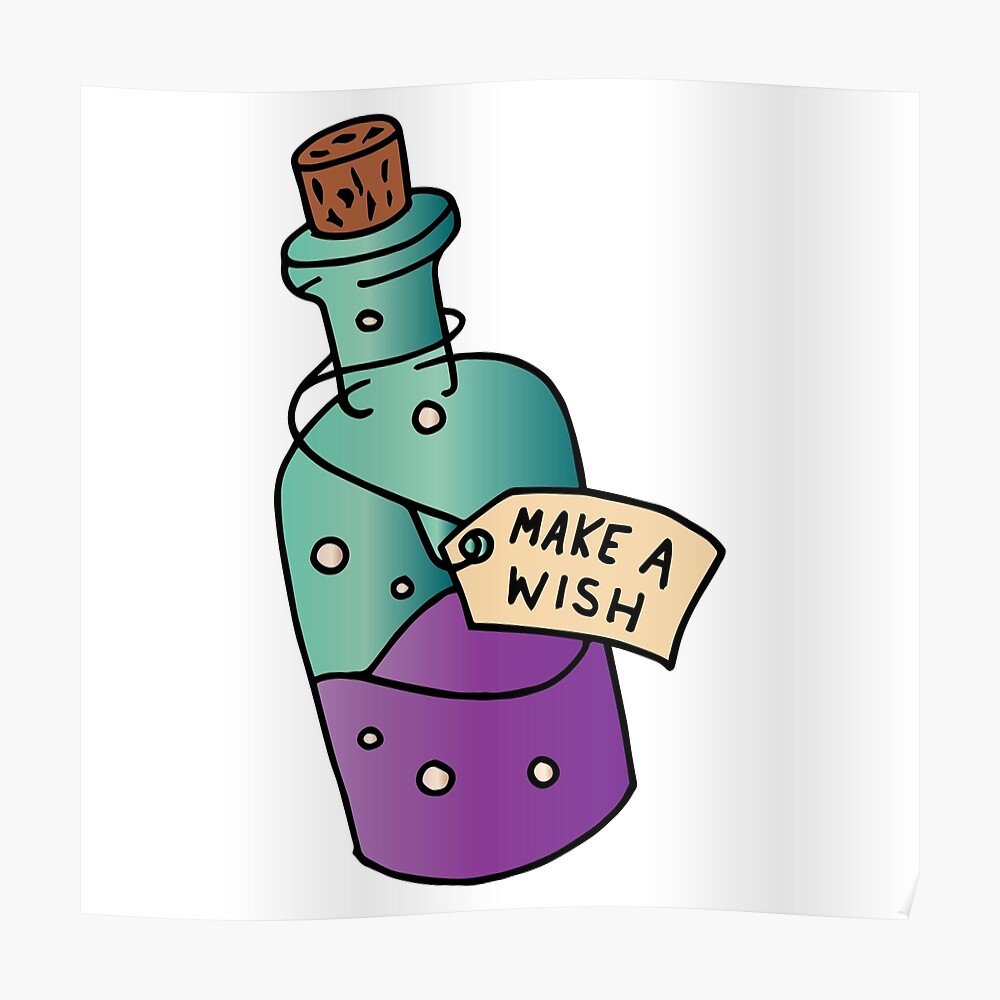 Make A Wish Colour Version Magic Potion In A Glass Bottle Art Print By 86gaz Redbubble