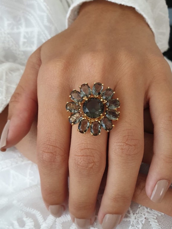 Black Gemstone Ring Big Ring Black Quartz Ring Size 9 Ring Etsy