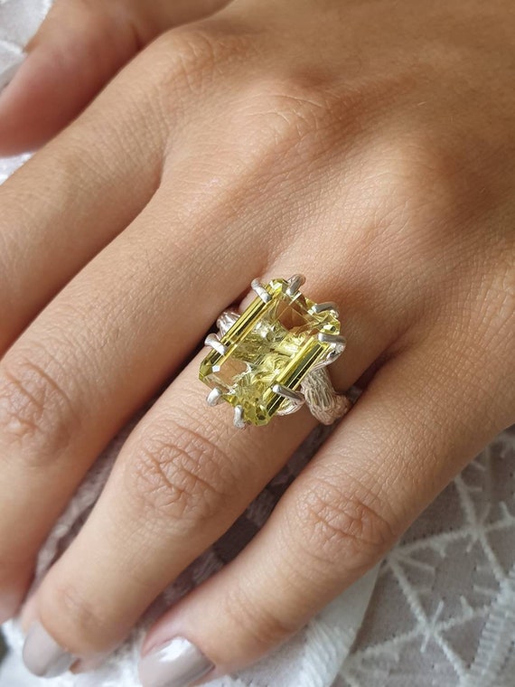 Lemon Quartz Ring Big Gemstone Rings For Women Yellow Quartz Etsy