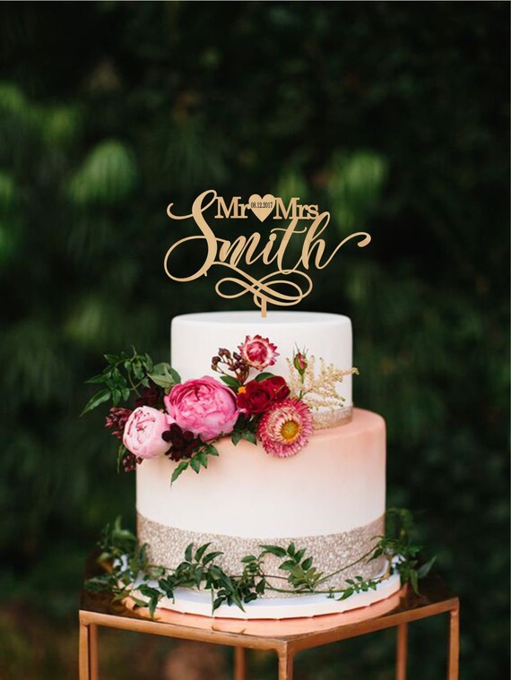 Personalized Last Name Wedding Cake Topper Heart Wedding Date Etsy