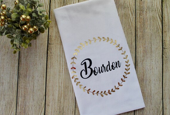 Custom Personalized Tea Towel With Last Name And Gold Foil Etsy
