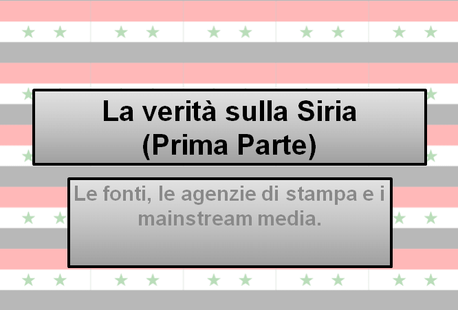VERITA' SULLA SIRIA Pubblicato da Elia Menta Mani sulla tastiera, mente che vaga alla ricerca di un articolo, di un video, di una vignetta, insomma di un piatto forte da poter pubblicare sul blog Qualcuno, da adulto, per avventura scopre che forse la verità è diversa Tutti gli altri, quelli che si occuperanno di banca o di. La verità sulla Siria (Le ONGPrima Parte) Approfondimenti / 3 anni fa Continua la censura di Direttanews e di iNews24 oscurati anche su Google Approfondimenti / 3 anni fa Intervista a Mario Giro Approfondimenti / 3 anni fa Unicef Italia ingerenze sulla politica italiana, Ius Soli e hate speech sui social. La mezza verità che i media occidentali non dicono è che molte città in Siria sono state, e ancora sono sotto il controllo di milizie mercenarie sostenute dall’estero Questi sono terroristi, non “ ribelli ”, appartenenti a gruppi quali il cosiddetto Stato Islamico (o Daesh), il Fronte al Nusra e Jaish alIslam.