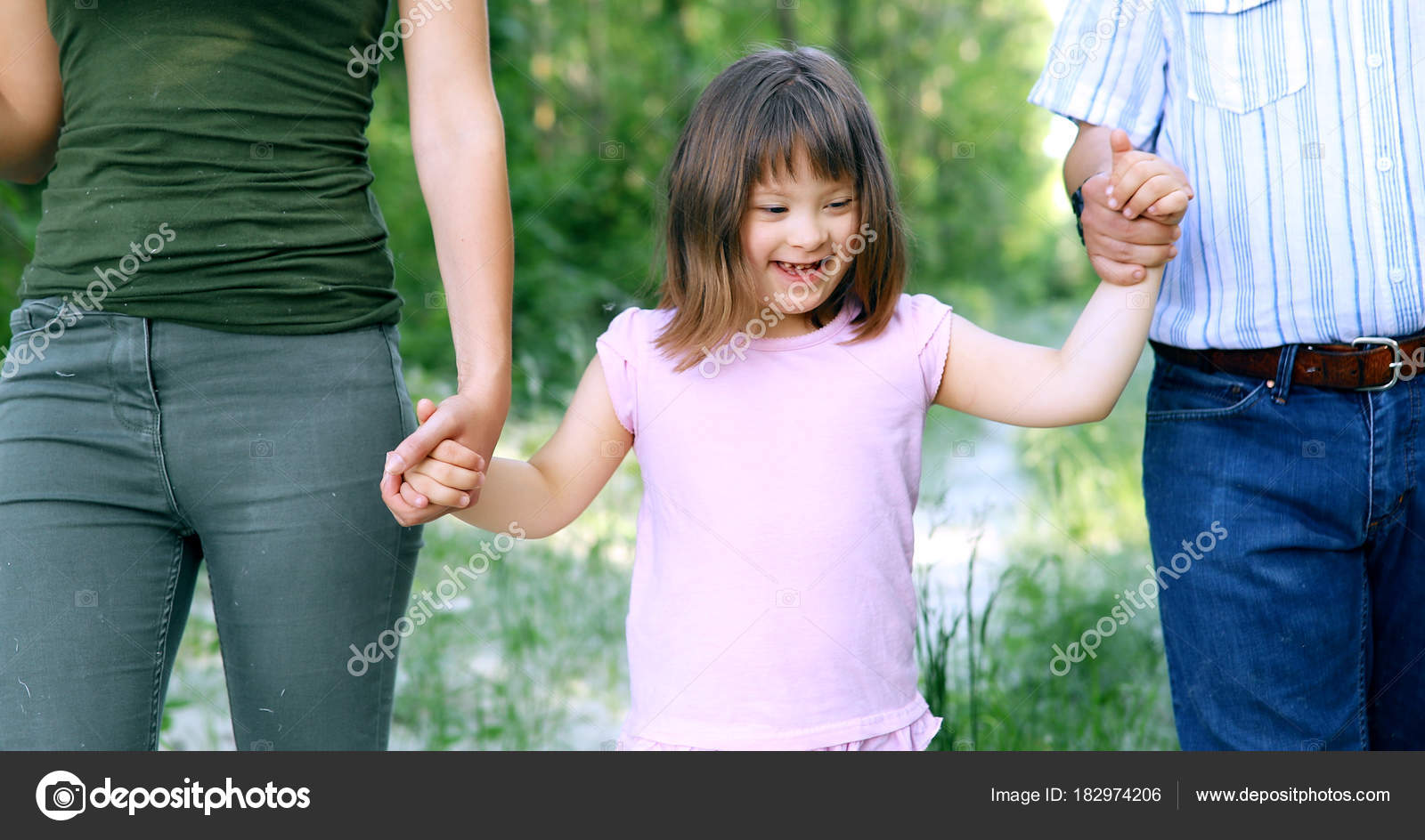 Beautiful Little Girl Syndrome Walking Parents Nature Stock Photo C Nd3000