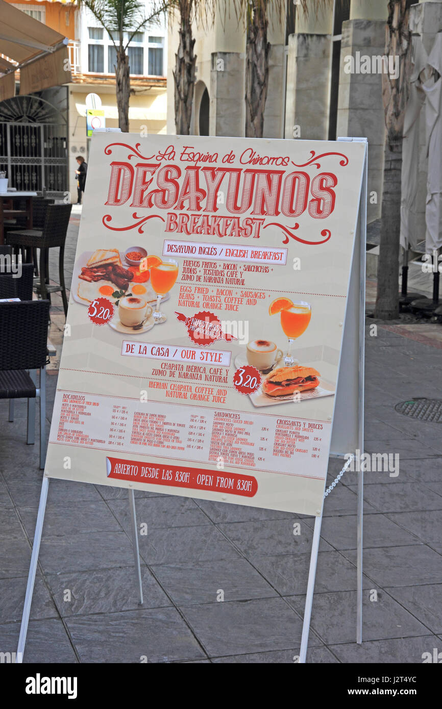 Bordo Esterno Ristorante Con Menu In Spagnolo E Inglese Fuengirola Spagna Foto Stock Alamy