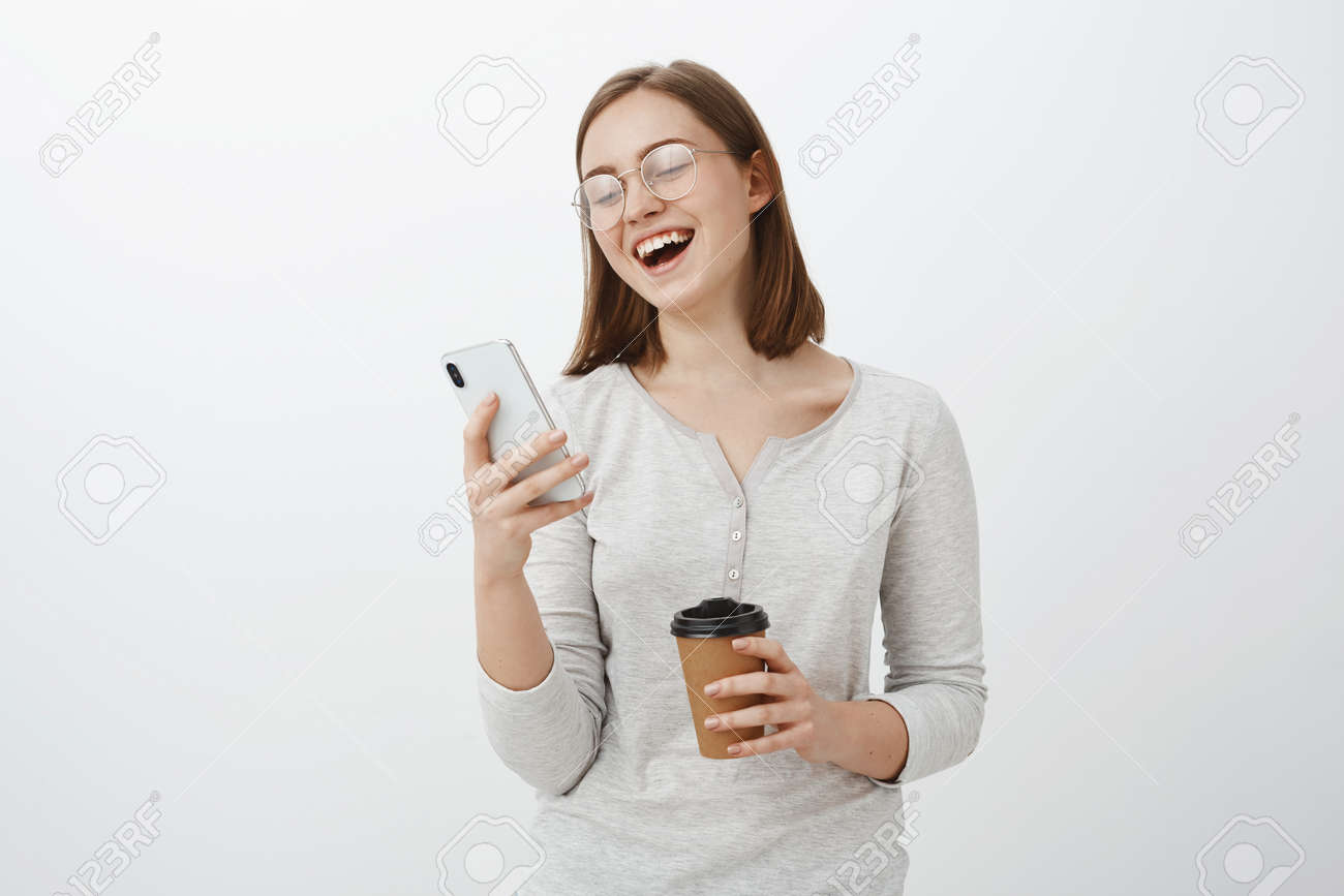 Woman Laughing Out Loud Reading Funny Joke Or Meme In Internet Stock Photo Picture And Royalty Free Image Image