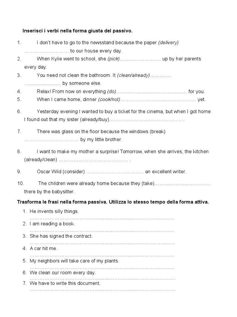 10 Frasi In Italiano Da Tradurre In Inglese Con Il Passivo Il Miglior Web
