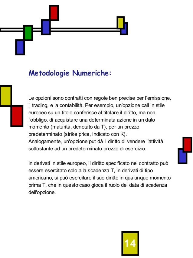 Titolo Stile Opzioni Le Opzioni Possono Essere Di Stile Europeo O Americano 1 Opzioni Di Stile Americano In Cui Il Diritto Incorporato Dell Opzione Ovvero Acquistare Il Sottostante Nel Caso Di Opzione Call E Venderlo Nel Caso Di Opzione Put Puo Essere
