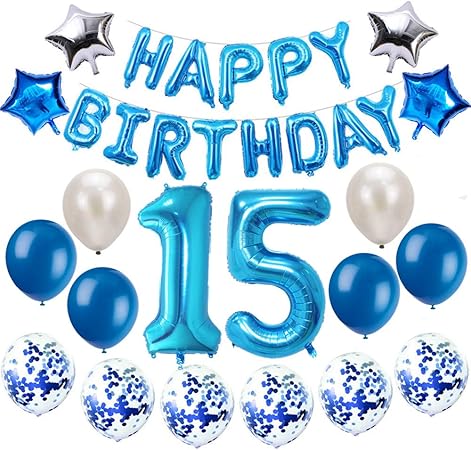 Oumezon 15 Compleanno Decorazione Blu 15 Compleanno Decor Per Ragazza Ragazzo Buon Compleanno Ghirlanda Banner Palloncino Foil Coriandoli Palloncini Deco Compleanno Numero Palloncini Amazon It Casa E Cucina