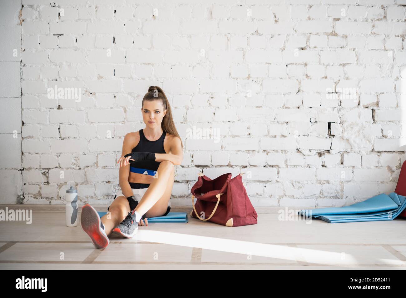 A Girl Is Resting After An Individual Training Session With A Professional Boxer In A Bright Training Room Stock Photo Alamy