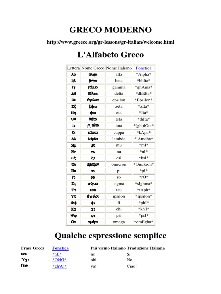Greco Moderno L Alfabeto Greco Pdf Download Gratuito