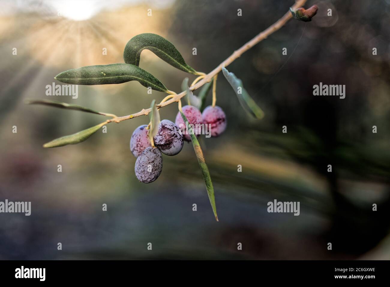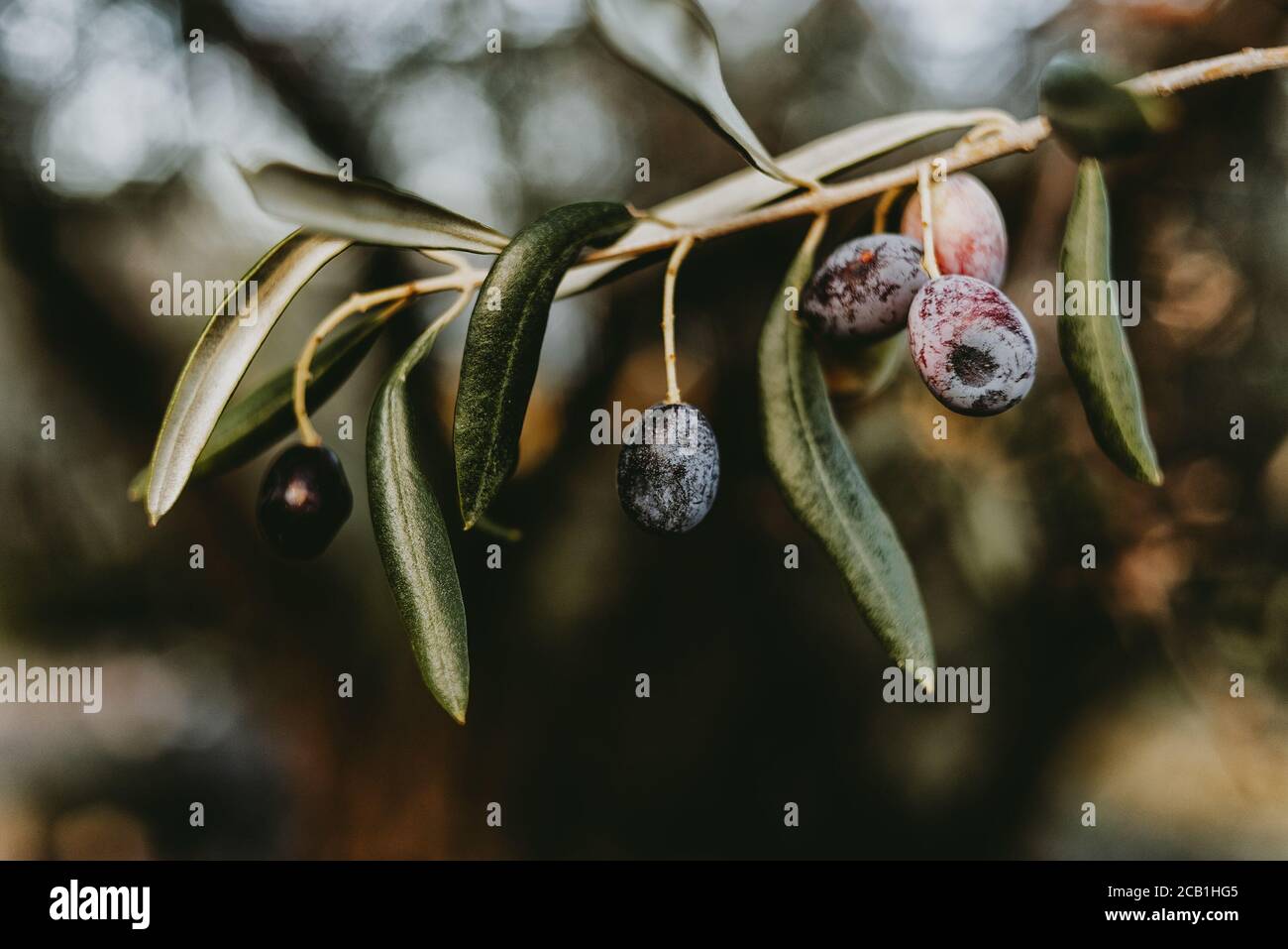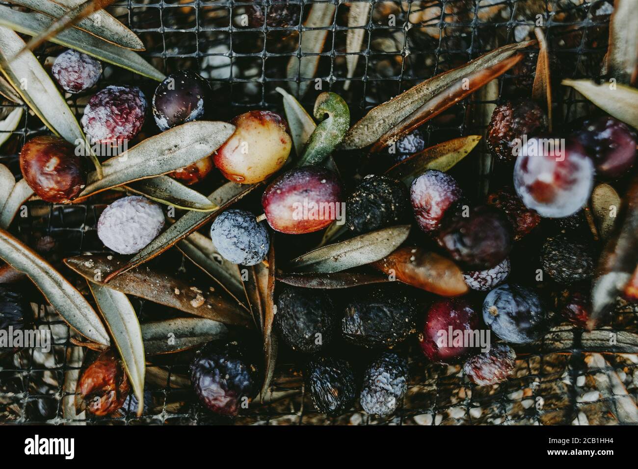 Cumulo Di Olive Nere Sull Albero Durante La Raccolta Lesbo Grecia Foto Stock Alamy