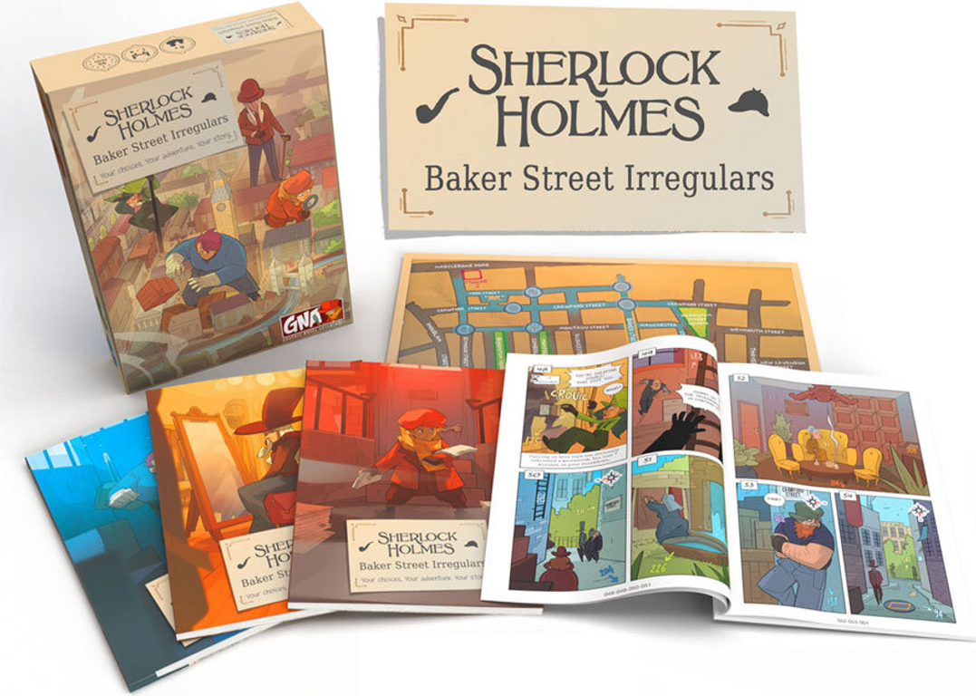 The latest upcoming instalment of the Sherlock Holmes Consulting Detective series casts players as the titular Baker Street Irregulars, a group of plucky urchins who gather information and otherwise aid the famous detective in his work. They live at 221B Baker Street, which they rent from Mrs Hudson at a discounted rate due to Sherlock's help in getting her husband executed In a confrontation with Moriarty, he forces Sherlock into complying by threatening to have one of his snipers kill John. Description Sherlock Holmes Baker Street Irregulars is the next cooperative Graphic Novel Adventures game Featuring Wiggins and his friends, The Baker Street Irregulars, you must solve four different kinds of cases for Sherlock Holmes to prove your worth You'll come across various criminal foes to test both your might and wits, as well as a myriad of puzzles and enigmas.