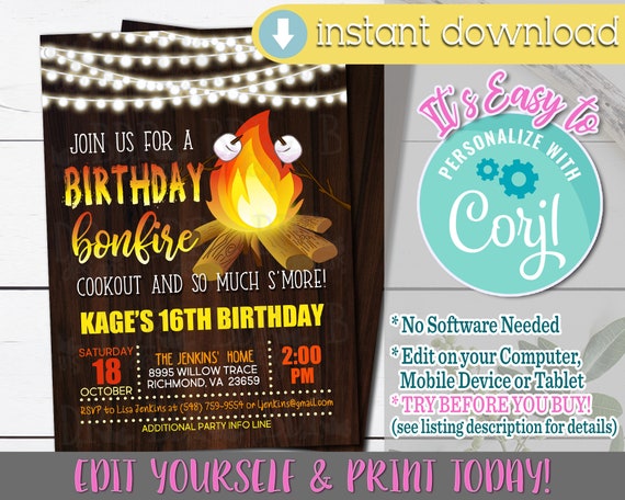 Bonfire Birthday Invitation Bonfire Birthday Invitations For Etsy