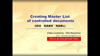 Creating Master List Of Controlled Documents Iso Nabh Nabl Youtube