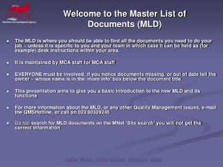 Ppt Welcome To The Master List Of Documents Mld Powerpoint Presentation Id