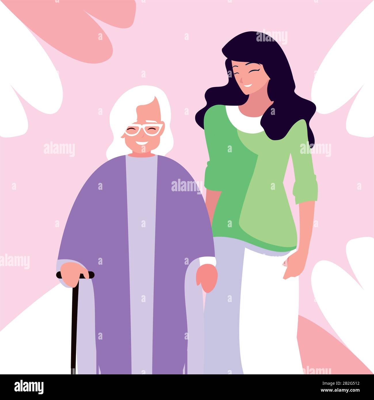 Grandmother And Daughter Woman Love Care For The Elderly Vector Illustration Design Stock Vector Image Art Alamy