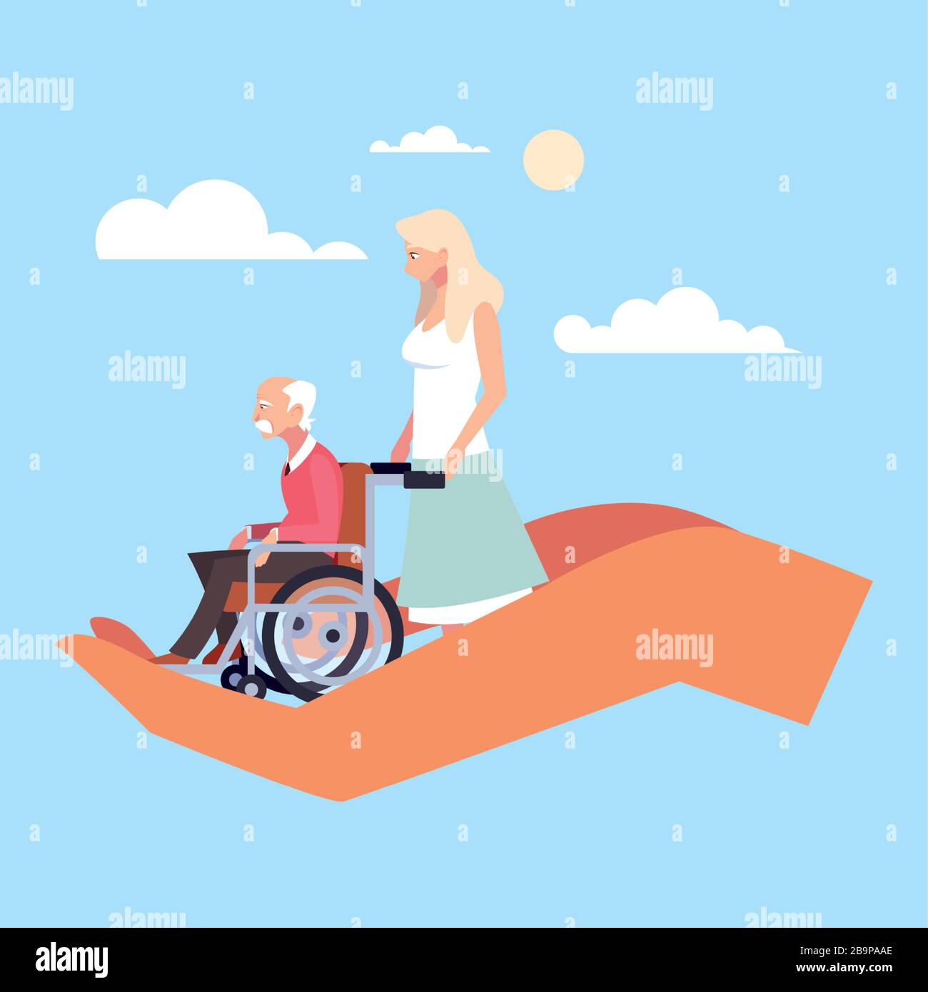 Woman Take Care Of Old Man Caring For The Elderly Vector Illustration Design Stock Vector Image Art Alamy