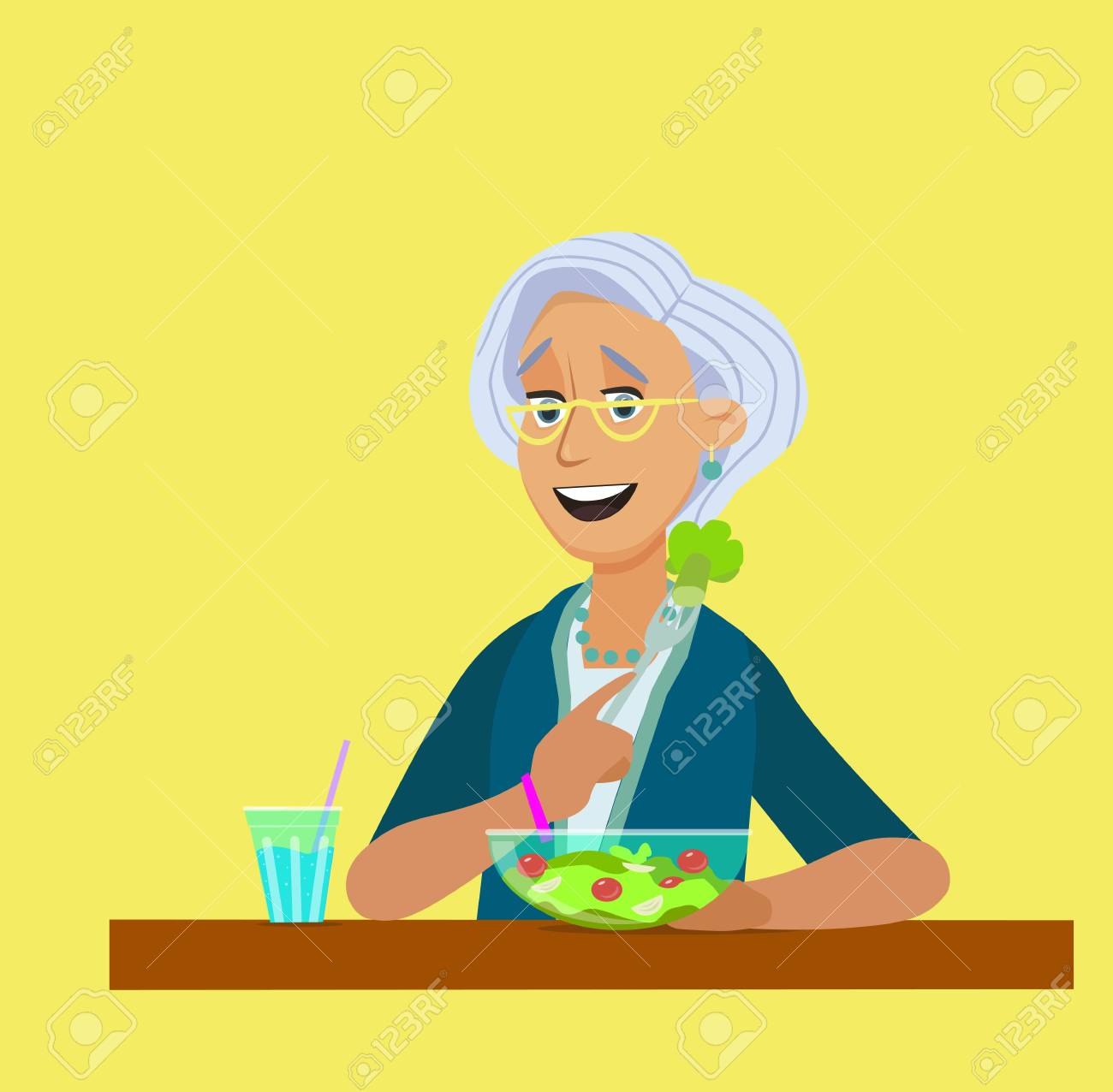 Elderly Man Eating He Is Sitting Eat Fish Steak On The Table Royalty Free Cliparts Vectors And Stock Illustration Image