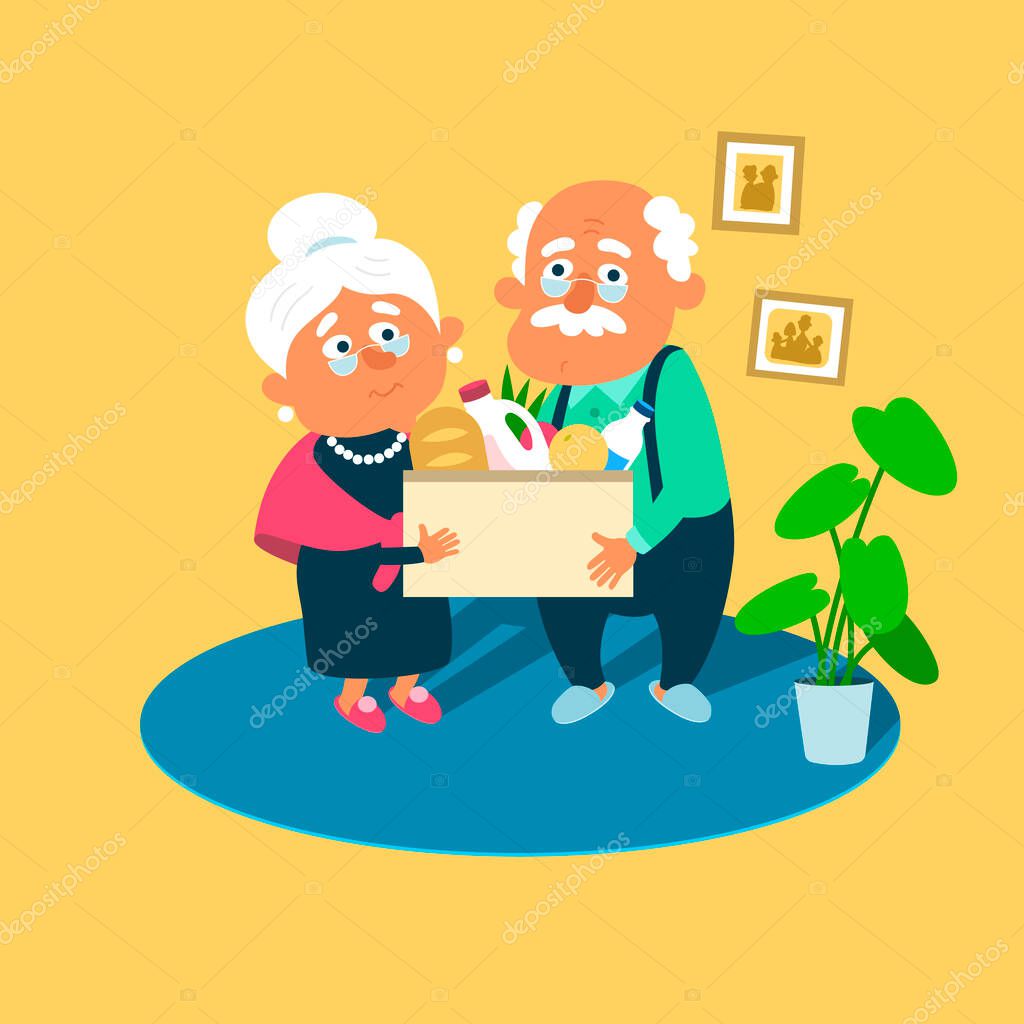 Safe And Contactless Food Delivery To The Elderly During Quarantine And Self Isolation A Couple Of Cute Old Seniors Holding A Box With Delivered Groceries Cartoon Vector Illustration Premium Vector In Adobe
