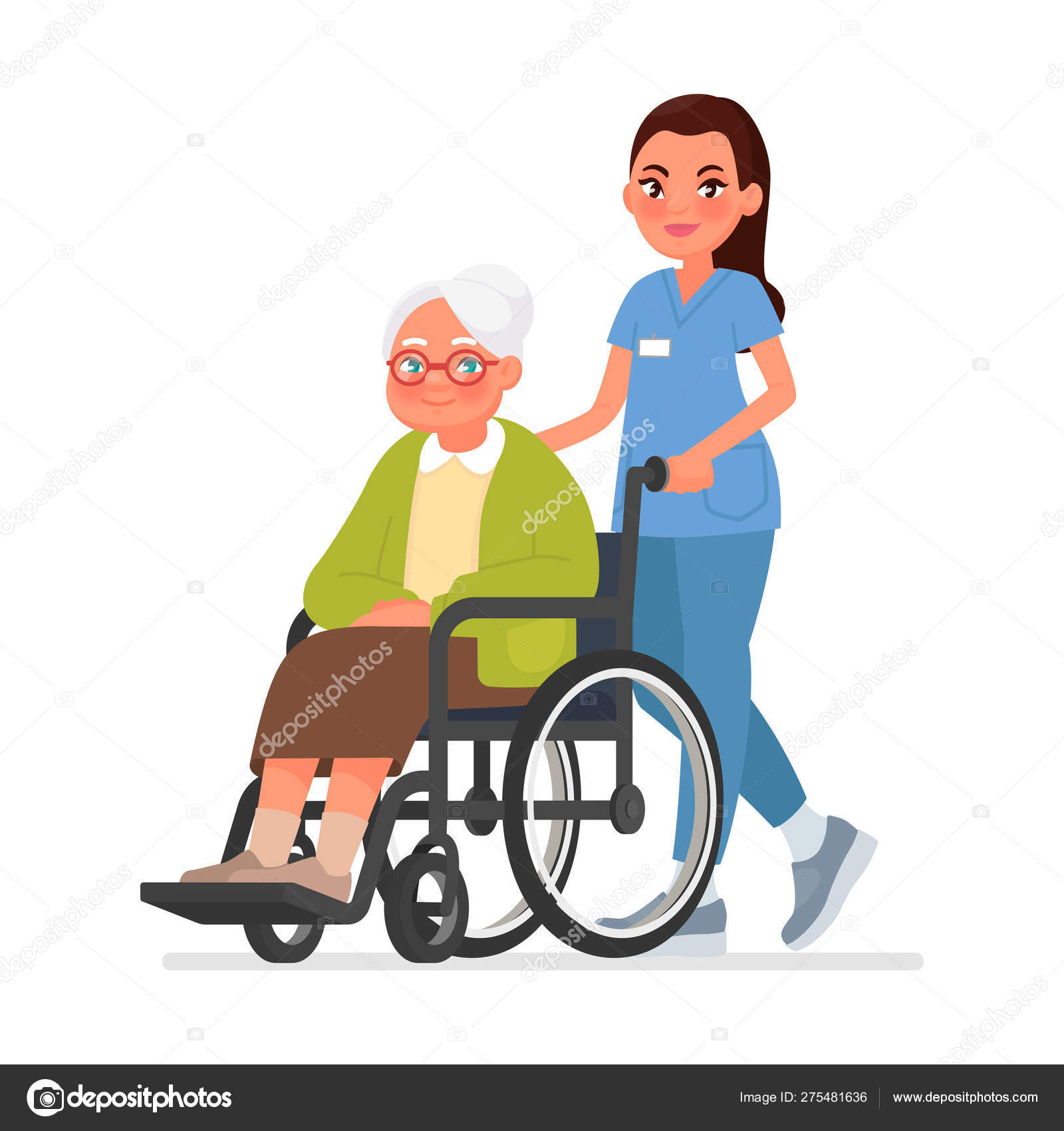 Nurse Carries A Grandmother In A Wheelchair Old Woman In Rehabilitation On A Hospital Stock Vector C Lexam165 Gmail Com