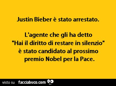 Justin Bieber E Stato Arrestato L Agente Che Gli Ha Detto Hai Il Diritto Facciabuco Com