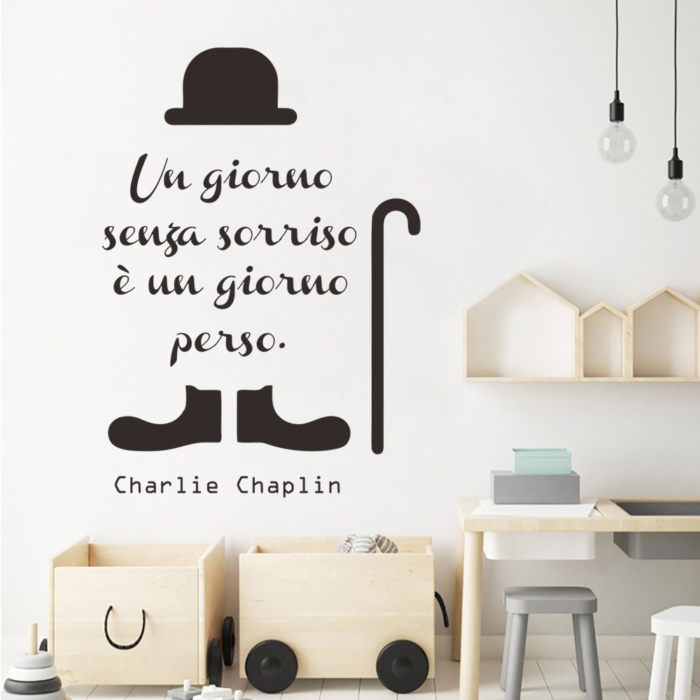 Frasi Scritte In Italiano Adesivi Murali Charlie Chaplin Un Giorno Senza Sorriso E Un Giorno Perso Adesivi Murali Citazioni Per Soggiorno Decorazione Camera Da Letto Amazon It Fai Da Te