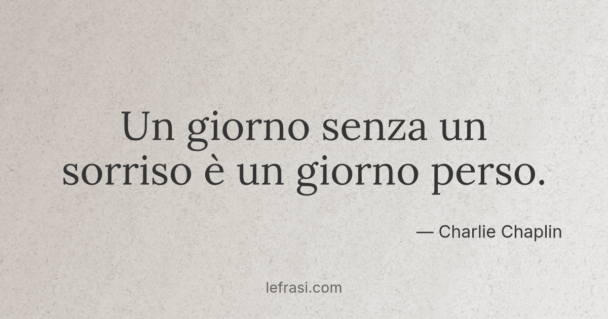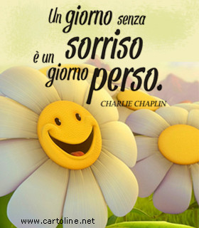 Un giorno senza un sorriso è un giorno perso Meditazione per il Buongiorno a Maria di Maggio 17 Testo di riferimento Rm 15,17 «Noi, che siamo i forti, abbiamo il dovere di portare le infermità dei deboli» Carissimi amici del Buongiorno a Maria, vi devo confessare che, meditando questo brano, mi è venuta la tentazione di fare una. Un giorno senza sorriso è un giorno perso Home;. Un giorno senza un sorriso è un giorno perso Aforismi di Charlie Chaplin Attore inglese 16 aprile 18 25 dicembre 1977 Breve biografia di Charlie Chaplin Charles Spencer Chaplin nasce il 16 aprile 18, a Londra, nella tipica periferia suburbana Il padre era guitto del musuchall detito al bere mentre la madre, mediocre cantante, in.