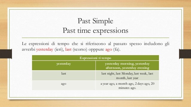 Soggetto Simple Past Del Verbo Espressioni Di Tempo Al Passato