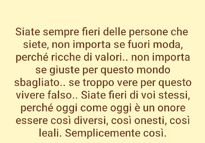 A volte, per vari motivi, non viviamo secondo il nostro vero essere, secondo i nostri valori, abilità, visione della vita, eccCi sono molti fattori che. Si può esser fieri dell'uomo, di se stessi?. Frasi sull’essere fieri di se stessi – sono fiero di sbagliare4tu© ultima modifica T da musica4tu Reposta per primo quest’articolo Fai clic qui per annullare la risposta.
