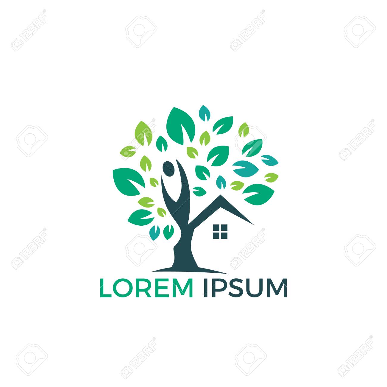 House And Human Logo Design Tree House And Joyful Human Vector Royalty Free Cliparts Vectors And Stock Illustration Image