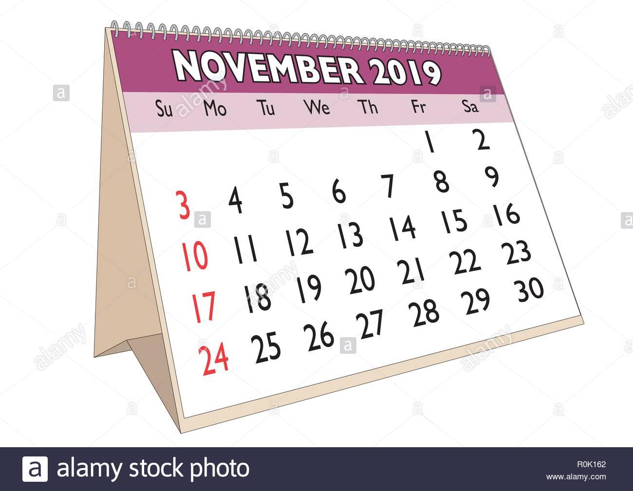 19 Novembre Mese In Una Scrivania Calendario In Inglese Settimana Comincia La Domenica Immagine E Vettoriale Alamy