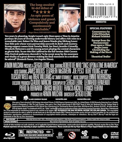 Amazon Com Once Upon A Time In America Blu Ray Robert De Niro Joe Pesci James Woods Tuesday Weld Burt Young Elizabeth Mcgovern Danny Aiello Treat Williams Jennifer Connelly Sergio Leone Sergio Leone Franco