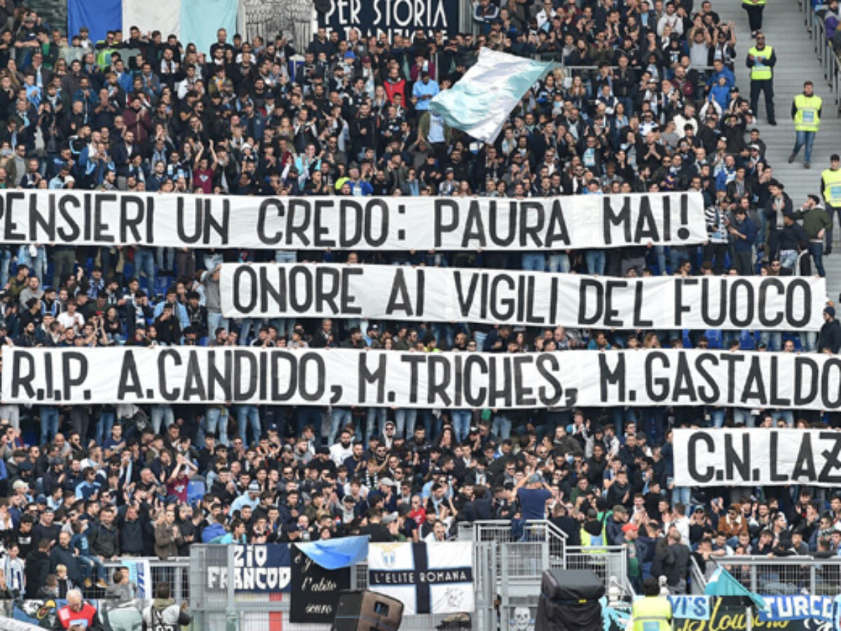 Lazio La Nord Espone Uno Striscione In Memoria Dei Vigili Del Fuoco Scomparsi Calcio News 24