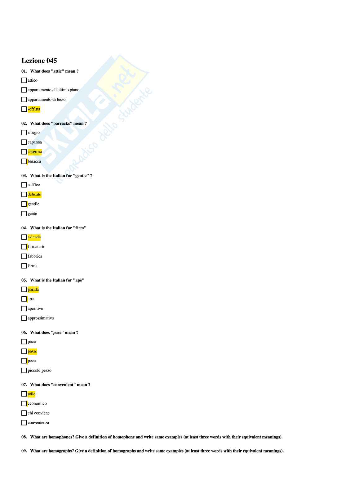 Paniere Lingua E Traduzione Inglese 4 Studocu