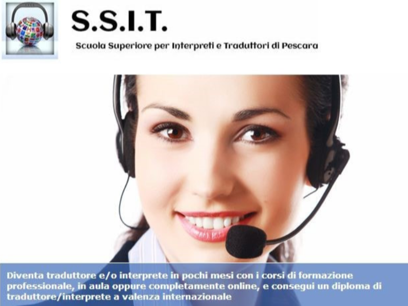 La SSIT Scuola Superiore per Interpreti e Traduttori (ex Scuola Interpreti), con sede a Pescara, da circa un trentennio si occupa di formazione di interpreti e traduttori, oltre che di servizi linguistici per enti pubblici e privati La Scuola ha attivato varie convenzioni con enti e Istituti universitari privati, come la Scuola Universitaria SSML “Gregorio VII” di Roma, gestendo corsi di laurea in mediazione linguistica finalizzati al conseguimento del “Diploma di Laurea in. Il luogo delle lezioni (a domicilio o online) e la situazione geografica ;. SSIT Scuola Superiore per Interpreti e Traduttori Master in traduzione settoriale 21 Master in traduzione nei settori turismo, web, tecnico Università "G d'Annunzio" ChietiPescara Laurea triennale in Mediazione Linguistica e comunicazione interculturale 16 Esperienze di volontariato Volontario.