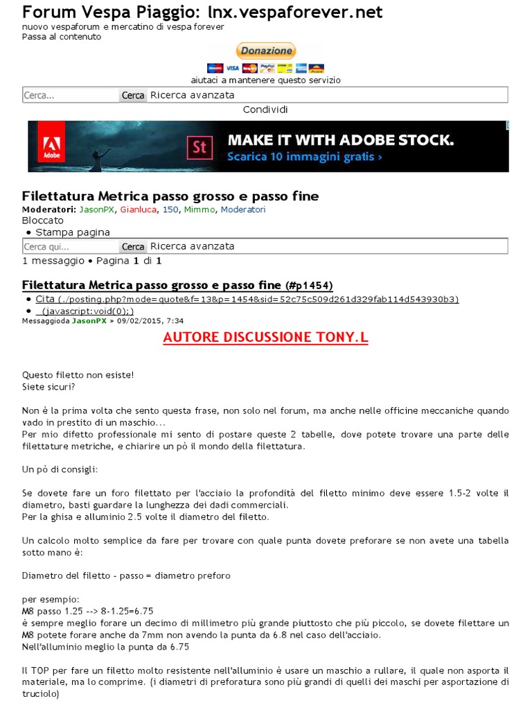 Filettatura Metrica Passo Grosso E Passo Fine Forum Vespa Piaggio Lnx Vespaforever Net Vespaforever It
