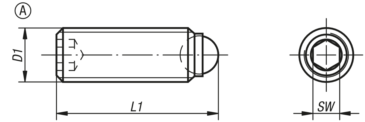 Kipp Viti Di Pressione A Sfera Senza Testa Con Filettatura A Passo Fine