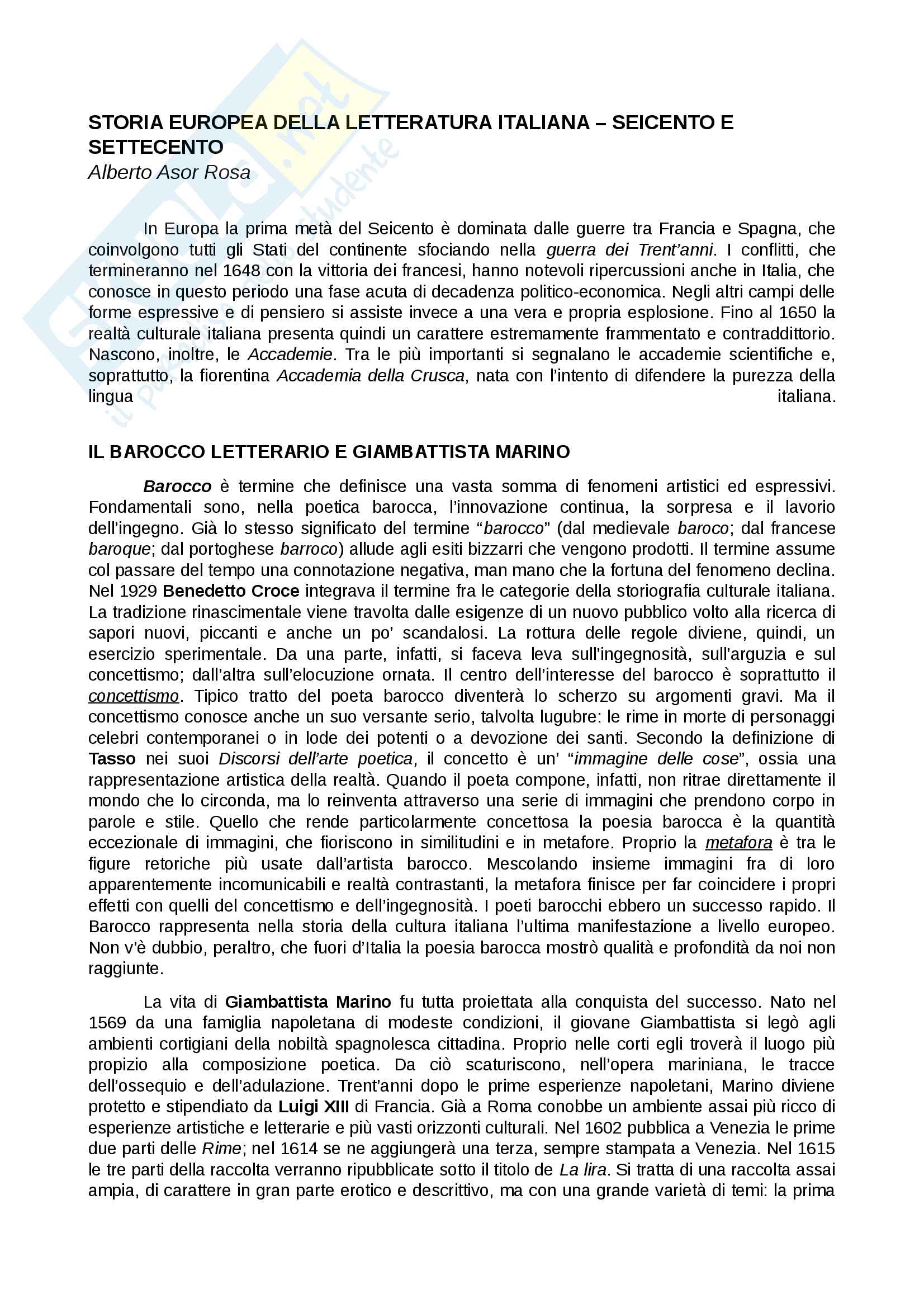Riassunto Esame Letteratura Italiana Prof Storini Libro Consigliato Storia Europea Della Letteratura Italiana Seicento E Settecento Asor Rosa Spera Storini