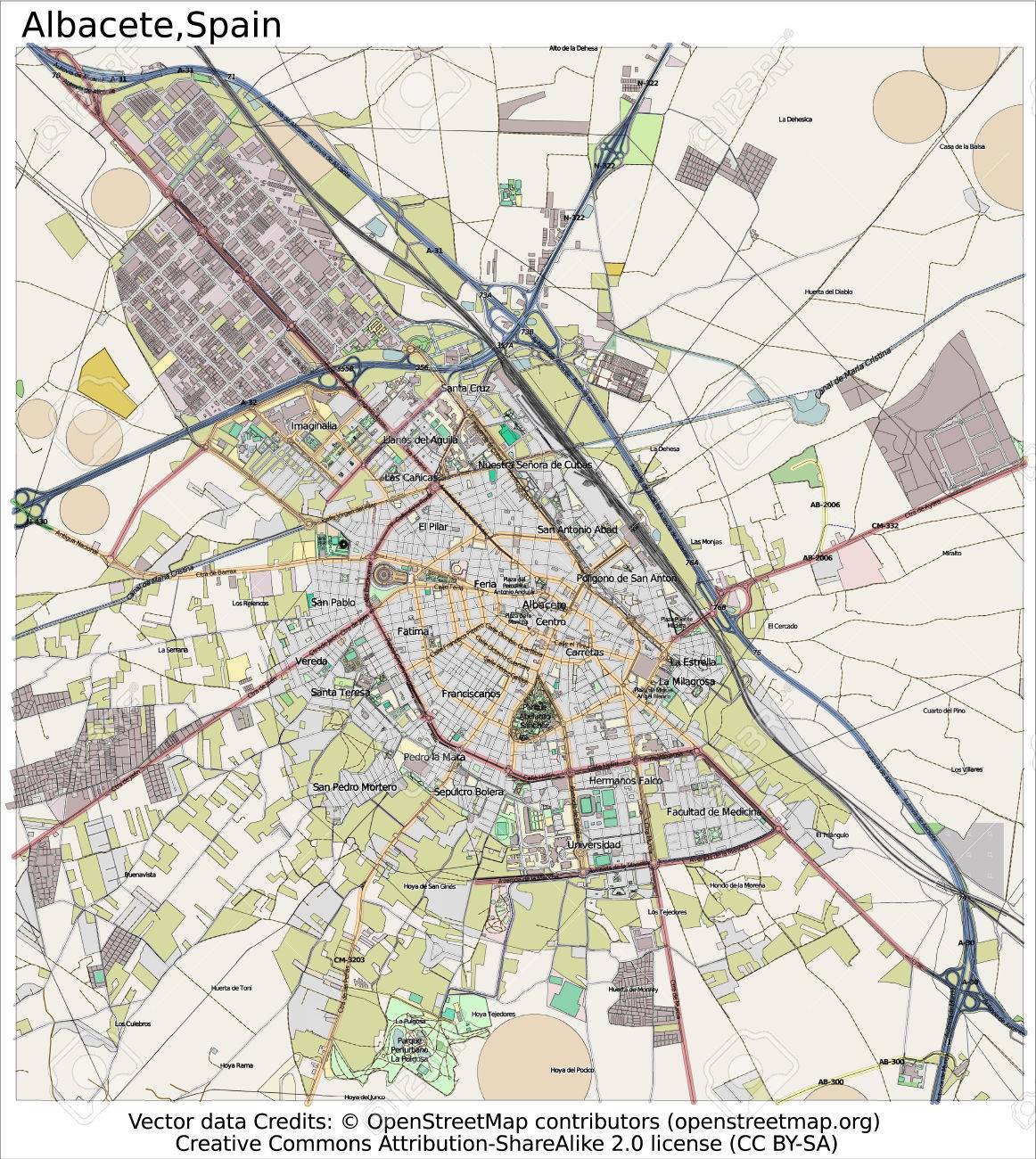 Immagini Stock Albacete Spagna Mappa Della Citta Vista Aerea Image