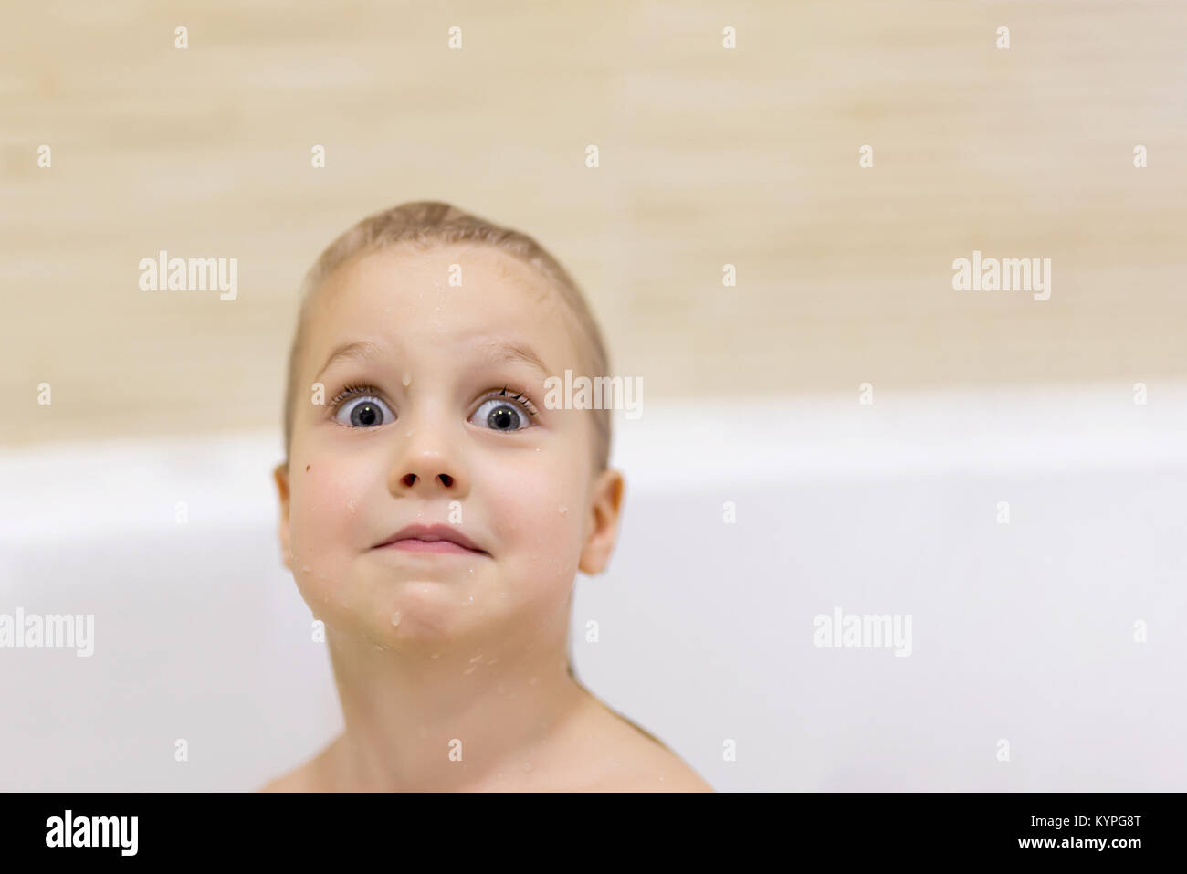 Ritratto Di Poco Carino Caucasian Ragazza Con I Capelli Umidi E Ampia Apri Gli Occhi In Un Bagno Divertirsi Facendo Un Grimace Stupiti E Sorpresi O Sconvolto Emot Foto Stock Alamy