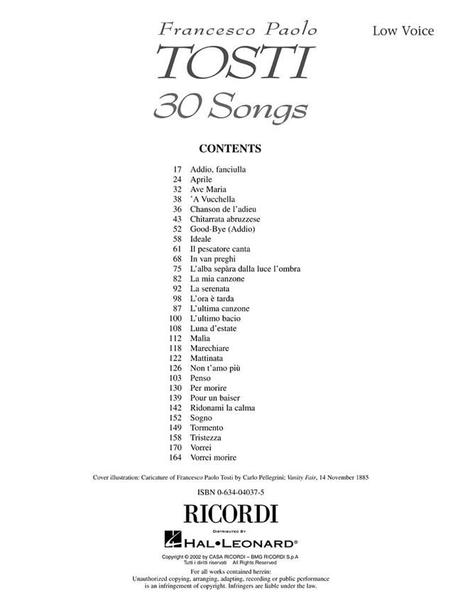 Francesco Paolo Tosti 30 Songs For Low Voice Presto Sheet Music