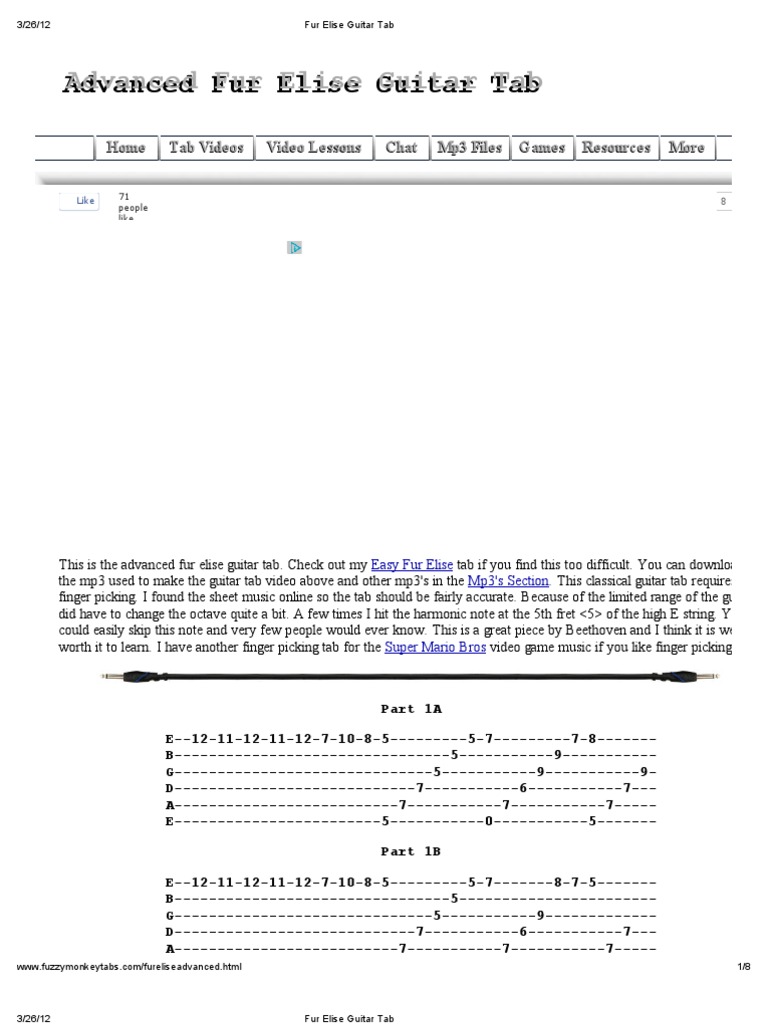 Free guitar tablature sheet music at http//wwwcapotastomusiccom Arr Peter Edvinsson Ludwig van Beethoven Fur Elise Guitar tab E7 Am. Easy Fur Elise by Beethoven guitar tab This is the easy Fur Elise guitar tab video If you find this too easy or are looking for a challenge check out the advanced finger picking version Click here for advanced finger picking Fur Elise guitar tab There are some more easy guitar tab videos such as the easy Super Mario Bros Tab in the Tab Videos area. Elisa Guitar Pro Tab by Serge Gainsbourg learn how to play chords diagrams Elisa guitarpro by Serge Gainsbourg with chords drawings, easy version, 12 key variations and much more fresh tabs top tabs lessons submit videos subscribe share tweet Elisa guitarpro Serge Gainsbourg.