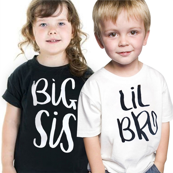 Big Sister Little Brother Shirt Big Sis Bro Lil Sis Bro Letter Printed Casual Cotton Funny Kides T Shirt For Sister Brother 3 12 Years This Price Is For One T Shirt Wish