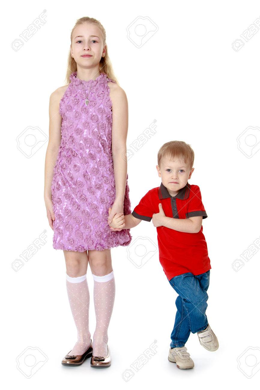 Big Sister And Little Brother Isolated On White Background Stock Photo Picture And Royalty Free Image Image 4197