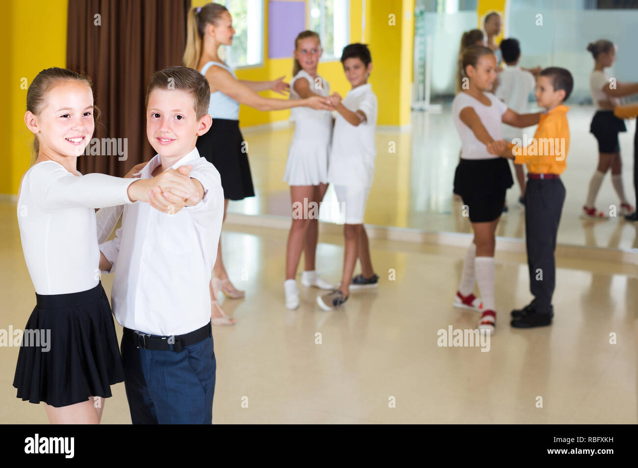 Coppie Di Bambini Ballano Valzer In Classe Foto Stock Alamy