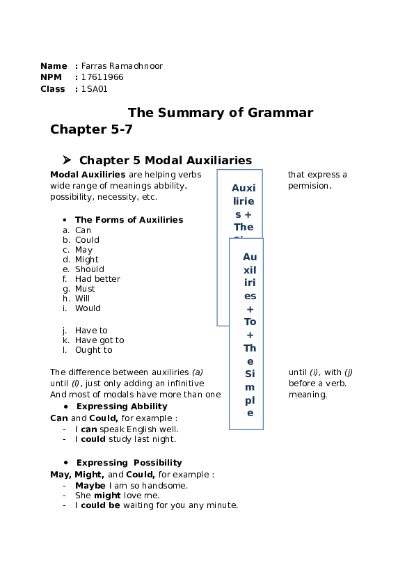 Doc The Summary Of Grammar Chapter 5 7 Farras Ramadhnoor Academia Edu