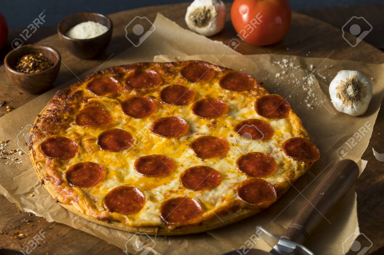 Homemade Greasy Pepperoni New York Pizza Stock Photo K Fotosearch