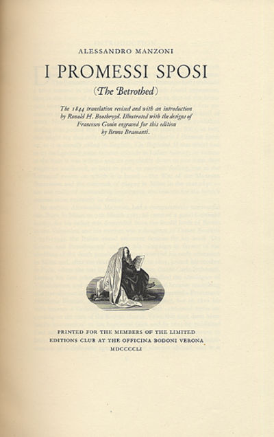 I Promessi Sposi The Betrothed Alessandro Manzoni Limited Editions Club Officina Bodoni Bruno